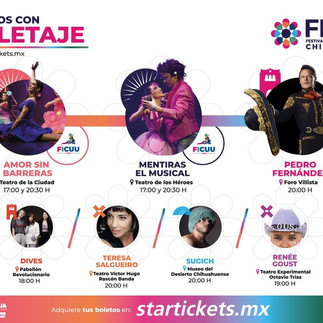 La Secretaría de Cultura del Estado da a conocer la dinámica para adquirir los boletos, con los cuales acceder a los eventos que forman parte de la programación del Festival Internacional Chihuahua (FICH) 2023, mismos que se podrán obtener a través de la plataforma startickets.mx, así como en puntos físicos de forma gratuita.